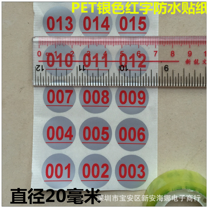 バーグラス防水シールデジタルシリアルナンバー001-200シリアルナンバー銀色シール直径20mmシール