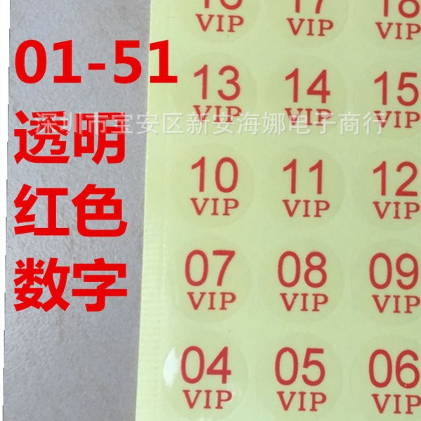 Vipボトル番号識別防水デジタルグラス1-51番号透明シール直径20mmシール