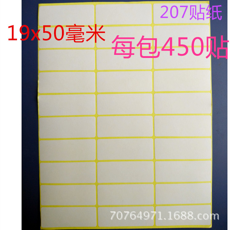 空白シール手書き商品が書かれていない糊207号規格19x50mmシールは1パックあたり450枚貼られている