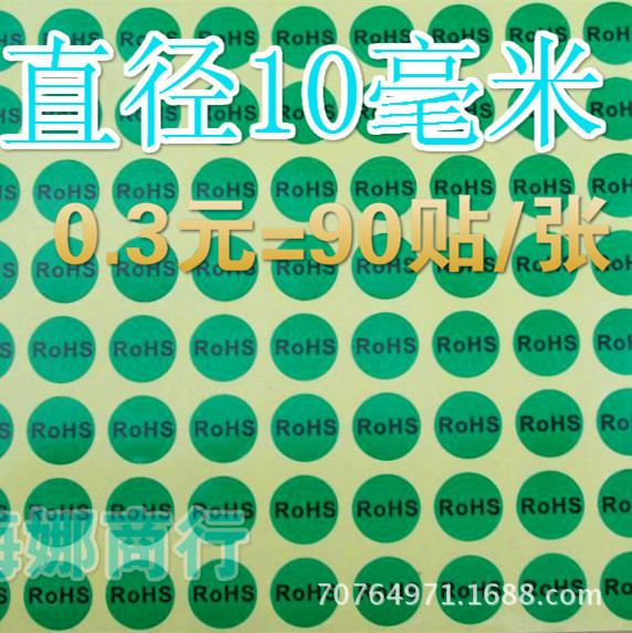 環境保護合格シールrohsマークラベルグリーンrohs検査合格直径10mm 1枚あたり90枚