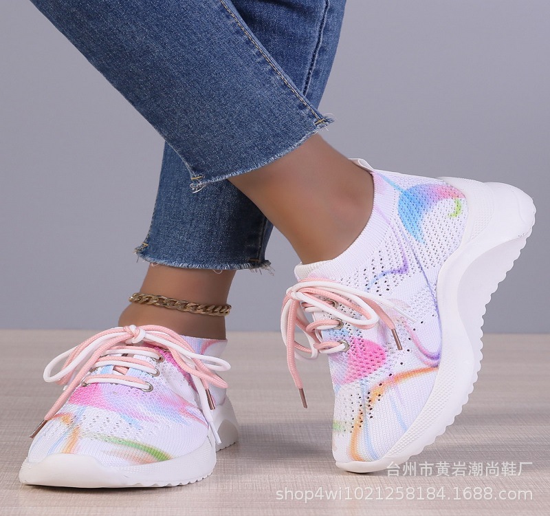 外国貿易の大きいサイズの速売は2023年の春と秋の新型の女性靴の通気性の飛織の柔らかい底の運動のカジュアルな靴の女性のドーパミンを売ります。