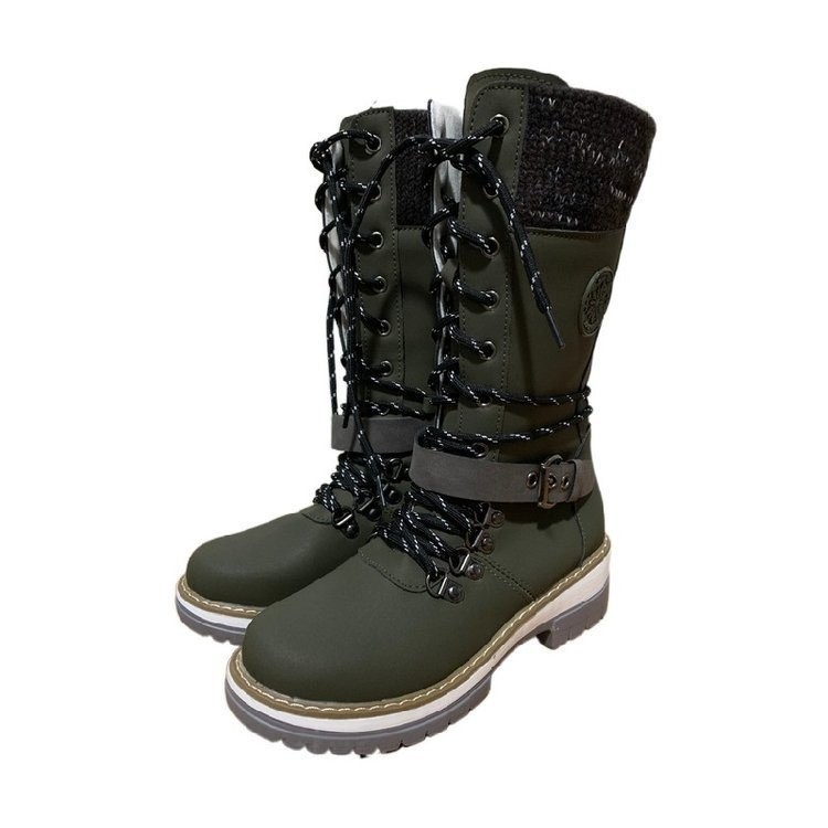 大きいサイズのマーティンの靴の女性の2023秋冬の対外貿易の新型の欧米の雪の靴の中で筒の太さと丸い頭の女性の騎士の靴