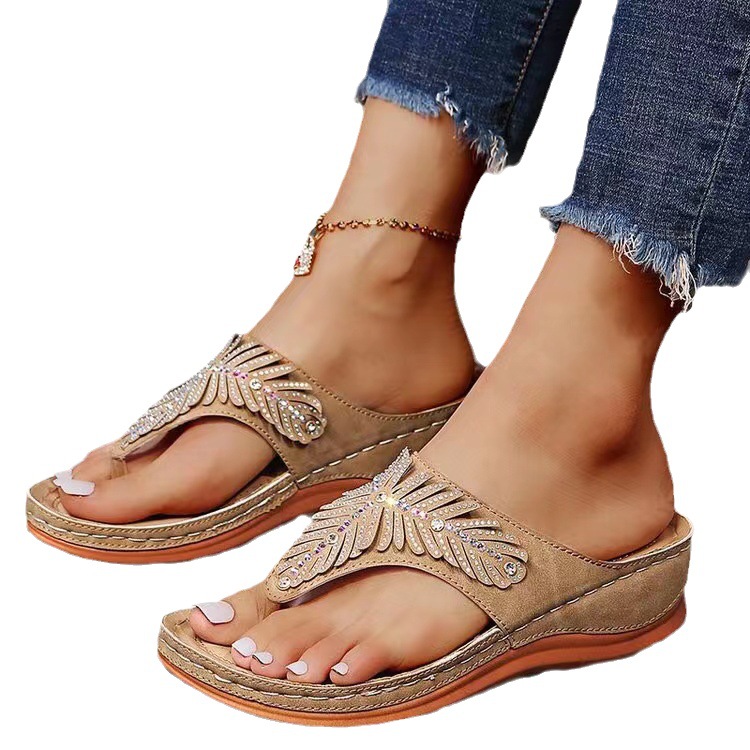 大きいサイズのサンダルのメーカーは直接に対外貿易の坂と厚い底の一字の露指のカジュアルなファッションのスリッパを供給して速く販売します。