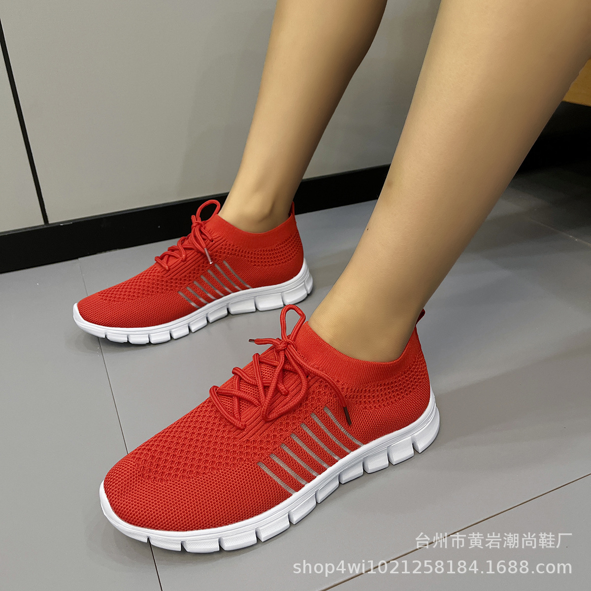 クロスボーダーの大きいサイズの女性のカジュアルな飛織の単靴2023秋のファッションの新型の通気性の丸い頭のひもの靴の対外貿易