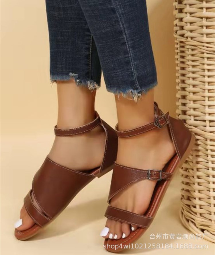 クロスボーダーの大きいサイズの女性のサンダルクロスボーダーの夏の新型の女性の靴の速売通の平と1字式のバックルのフラットサンダル