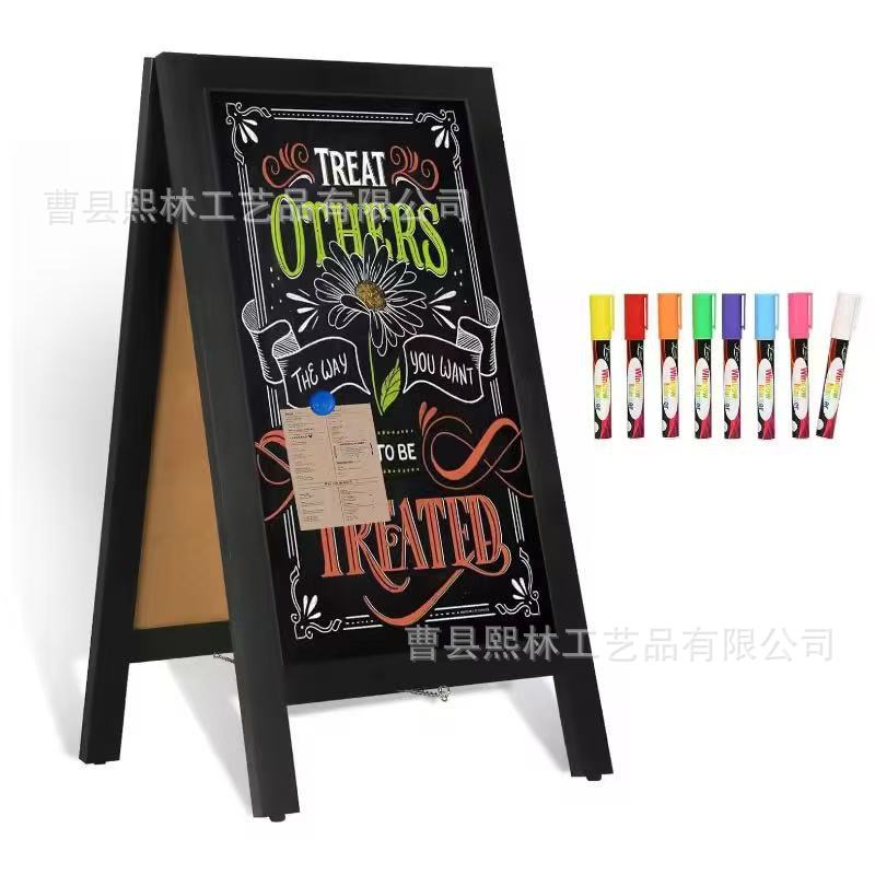 シンプルな木製カフェ黒板 A 型フレーム黒板角度調整可能なディスプレイスタンド折りたたみ式両面黒板