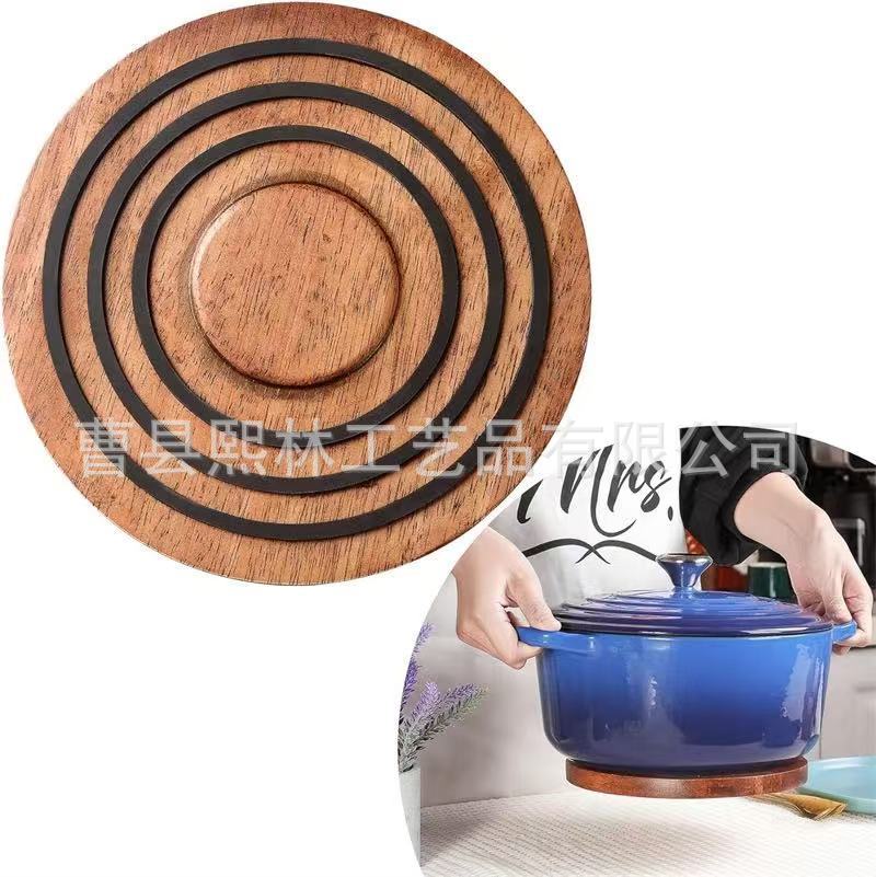 シンプルな木製磁気断熱キッチン円形砂鍋マット木製多機能黒色シリコンリング磁気吸引式鍋マット