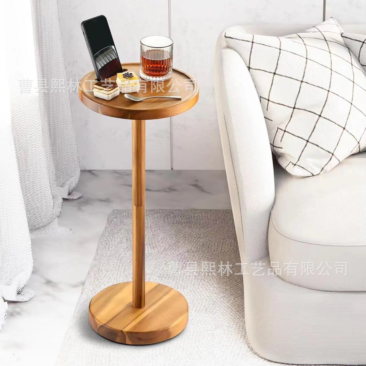 シンプルな木製収納棚リビングソファスナックトレー床置き式ドリンクテーブル木製トレー携帯電話スタンド