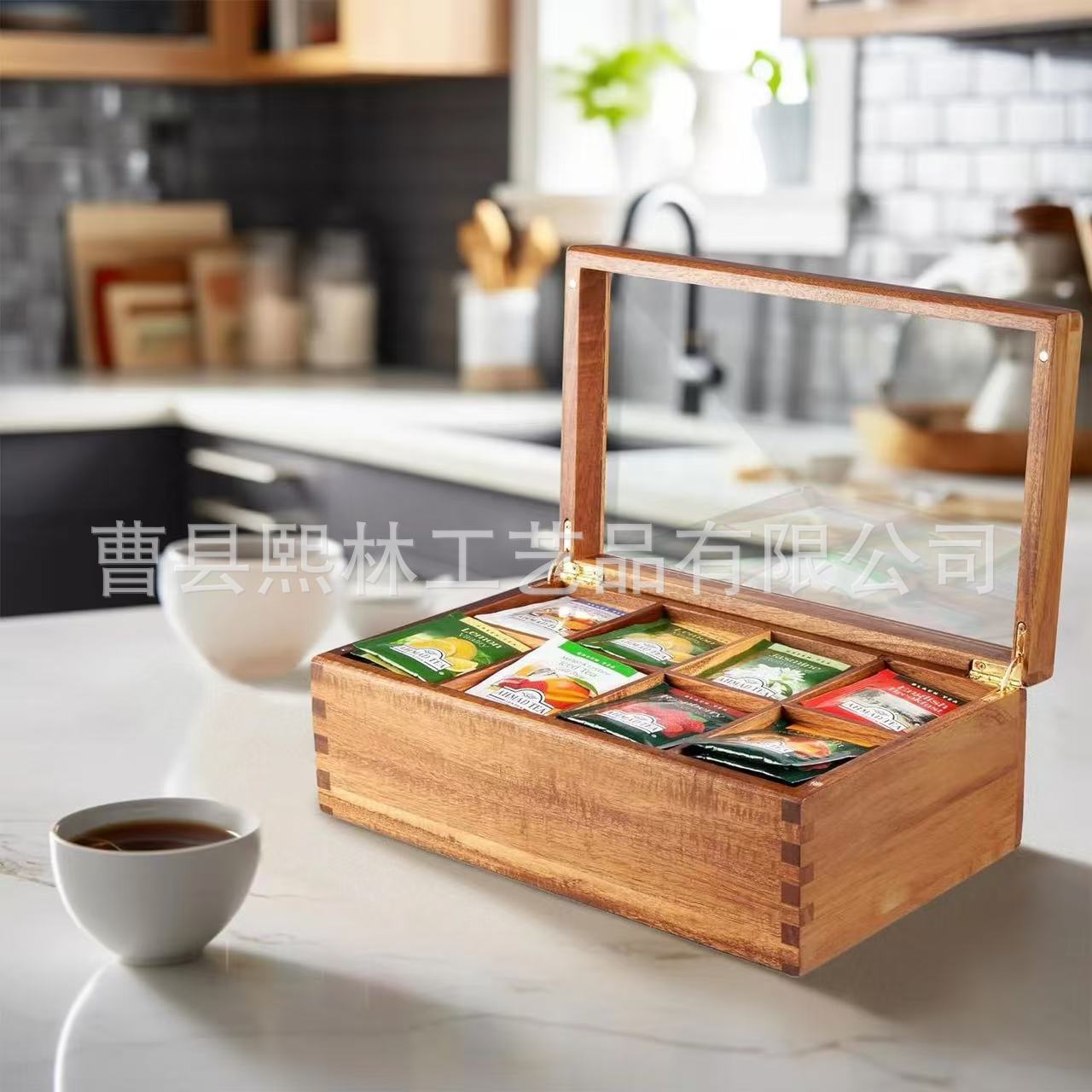 レトロ木制収纳ボックス木制茶叶ボックス茶水の间ミルクティーバッグコーヒーバッグ収纳ボックス家庭用多格収纳