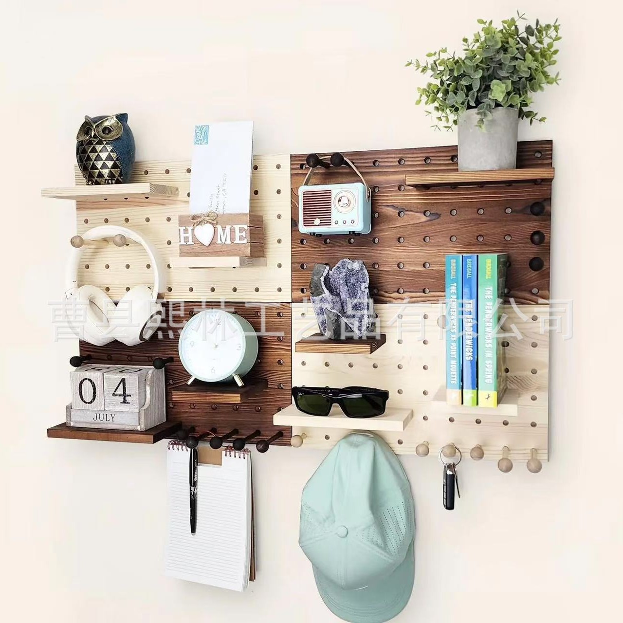 クロスボーダー木製穴板装飾穴壁収納棚木製一字棚リビングルーム寝室壁物置棚