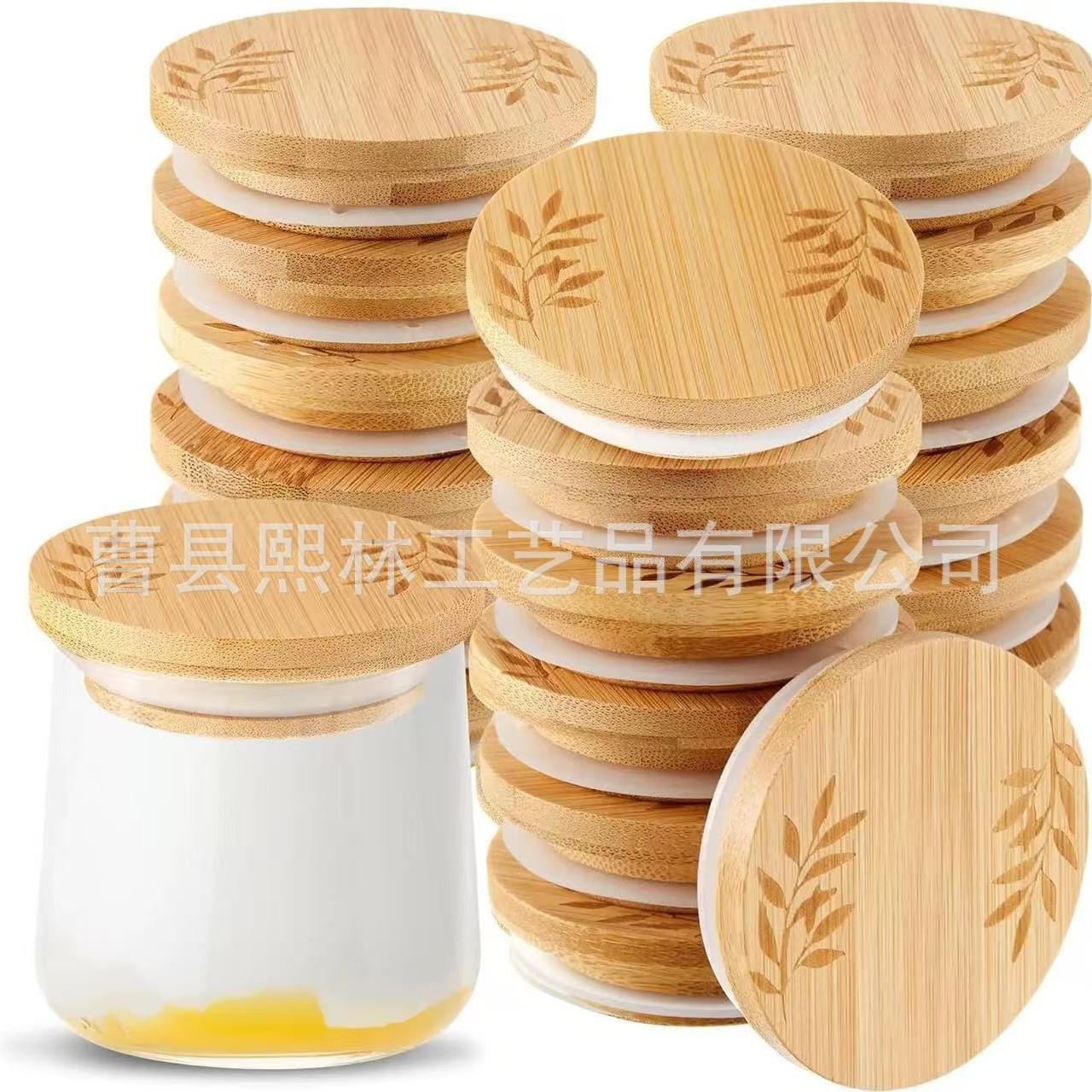 木製家庭用カップ蓋円形マグカップグラス竹製蓋木製シンプル収納缶ヨーグルトカップ蓋