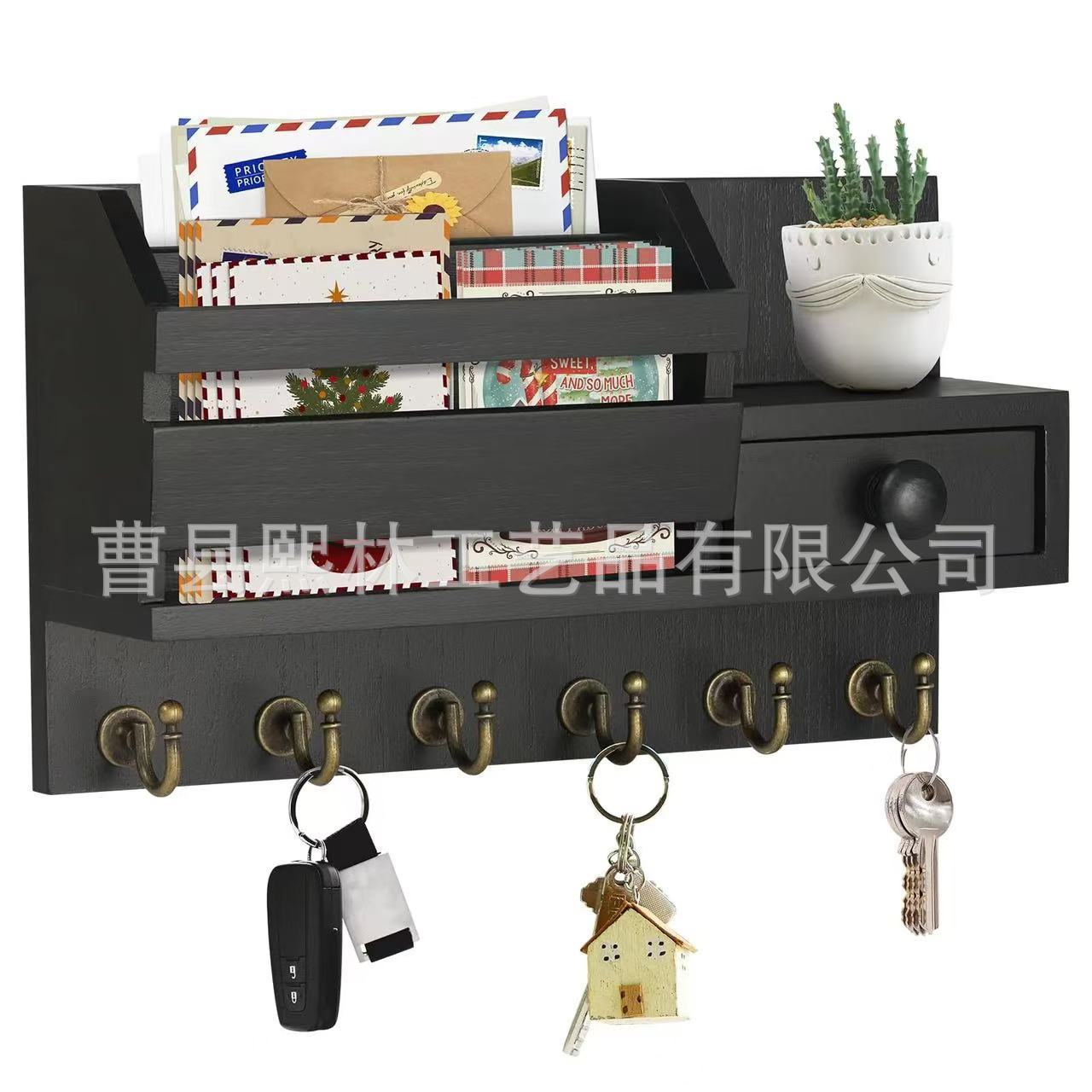 創意木製壁掛け式キーホルダー壁棚棚木製入戸ドア後フック玄関壁面収納棚