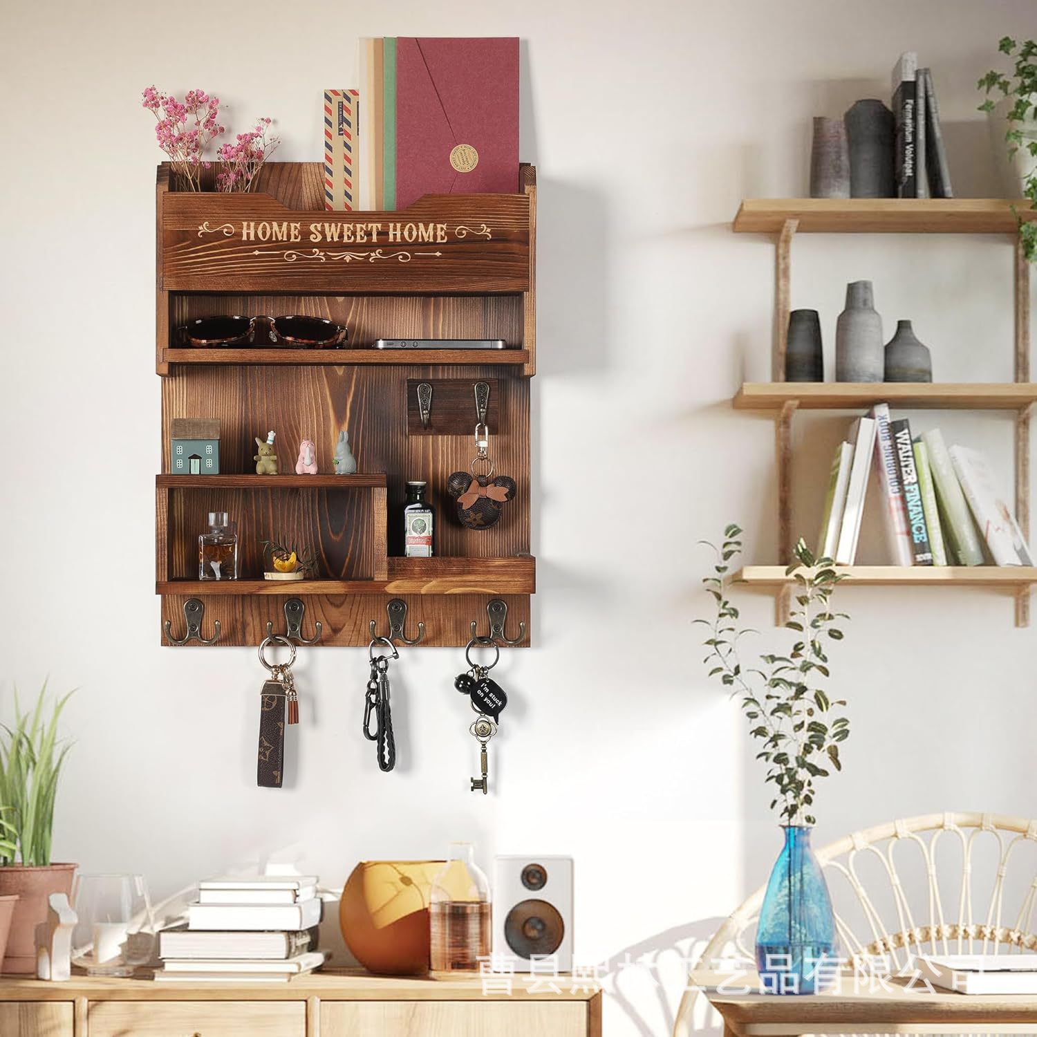 田舎風木製棚客間壁玄関鍵棚実木サングラス収納棚手紙カード棚