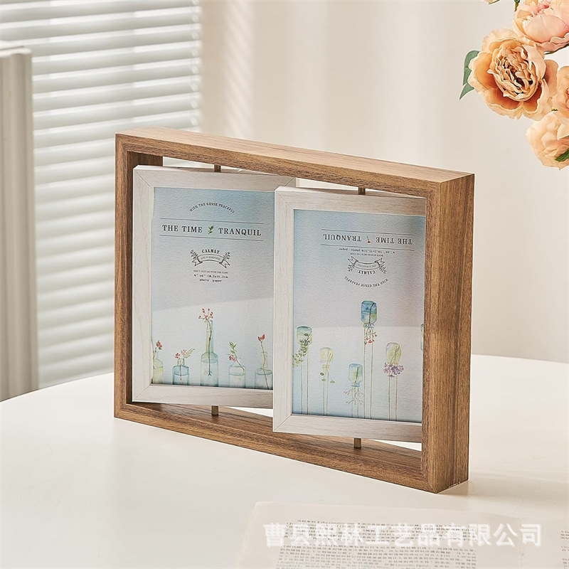 木製回転式フォトフレーム 両面アクリルガラス額縁 卓上 家族写真ディスプレイスタンド