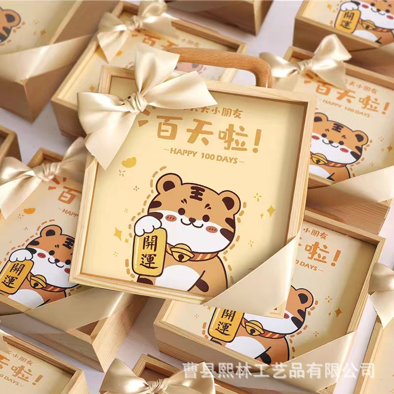 幼稚園児プレゼント箱ウサギ年赤ちゃん満月お土産箱虎年百日満1歳木製ギフトボックス