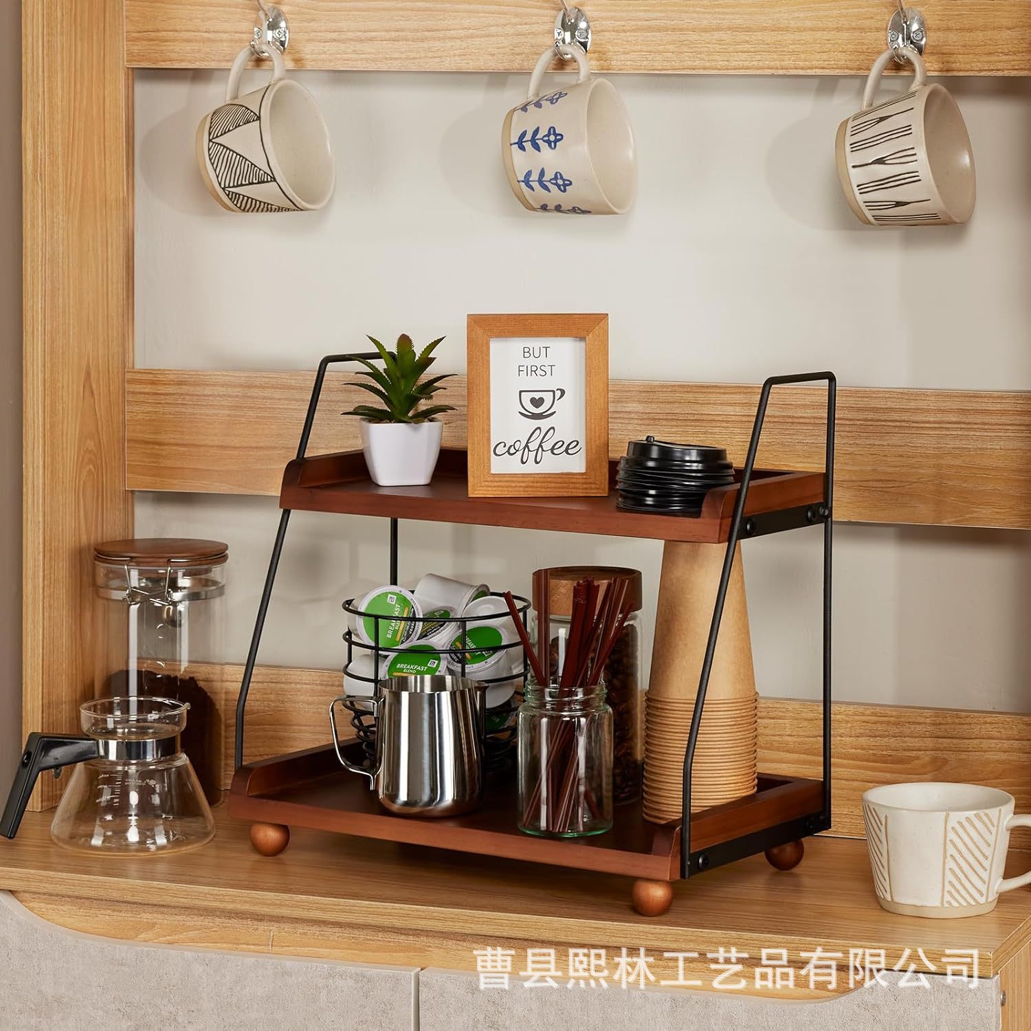 クロスボーダー木製キッチンデスクトップ調味料収納棚多層カップ棚二重コーヒーシロップ整理棚