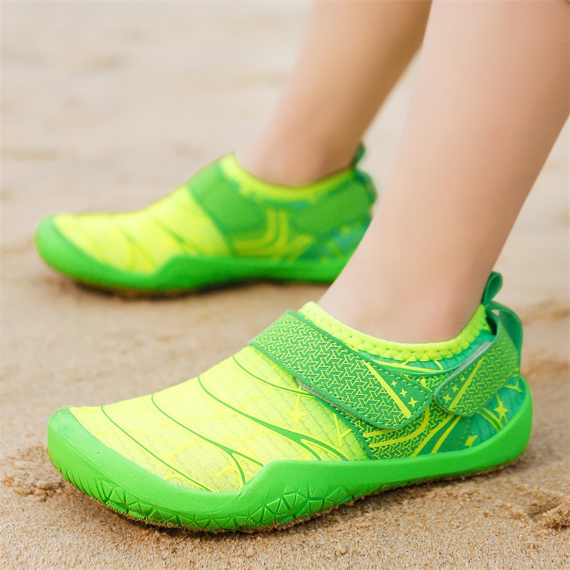 子供用ウォーターパークのビーチシューズは男女が川に泳いでいます。
