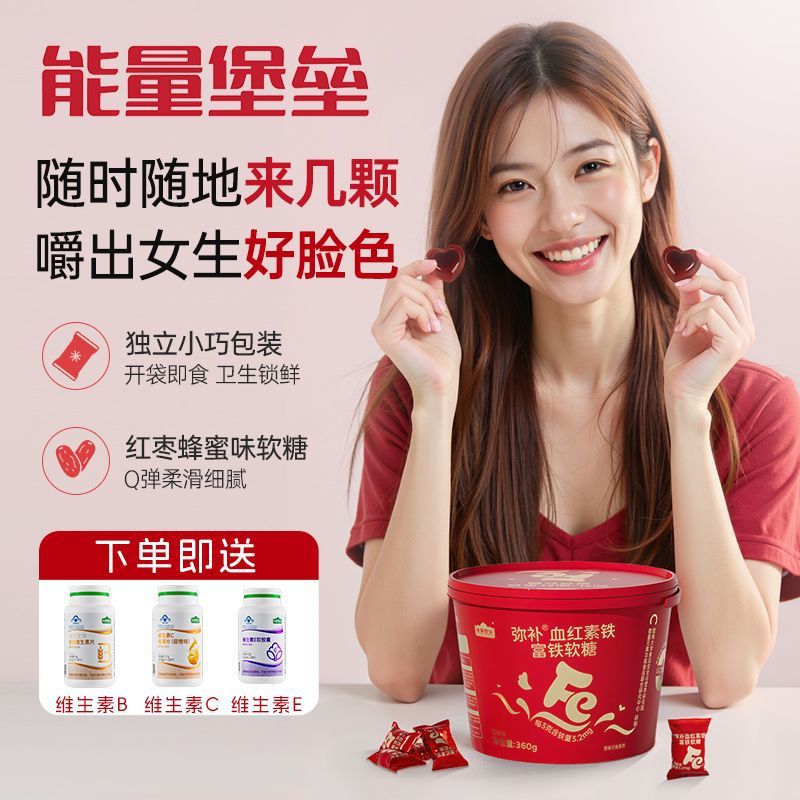 弥红素铁富铁软糖姨妈期孕妇女生儿童铁元素铁剂正品