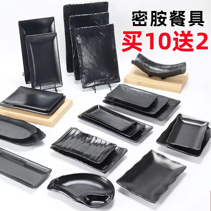 1688メラミン黒皿 レストラン骨皿 長方形皿 鍋レストラン皿 バーベキュー皿 食器カバー ライスプレート 業務用