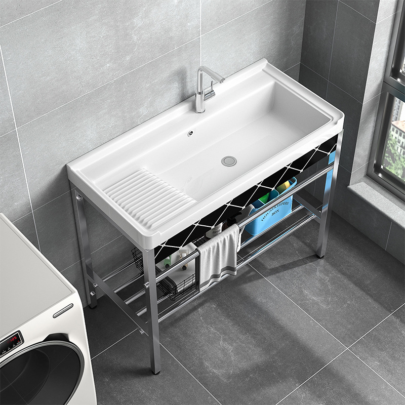 セラミック洗濯洗面器一体型単槽洗面器床置き式洗濯板付きステンレスブラケットバルコニー洗濯洗面器