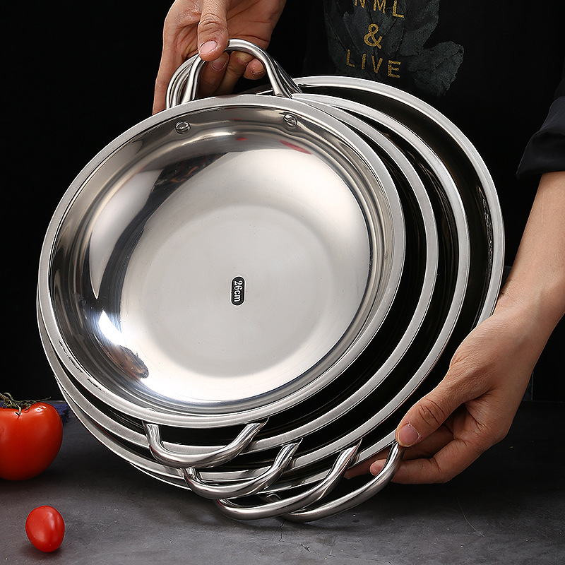 ステンレス製ドライポットプレート、業務用ドライポットプレート、ホテル両耳プレート、食器皿、スパイシーポットプレート