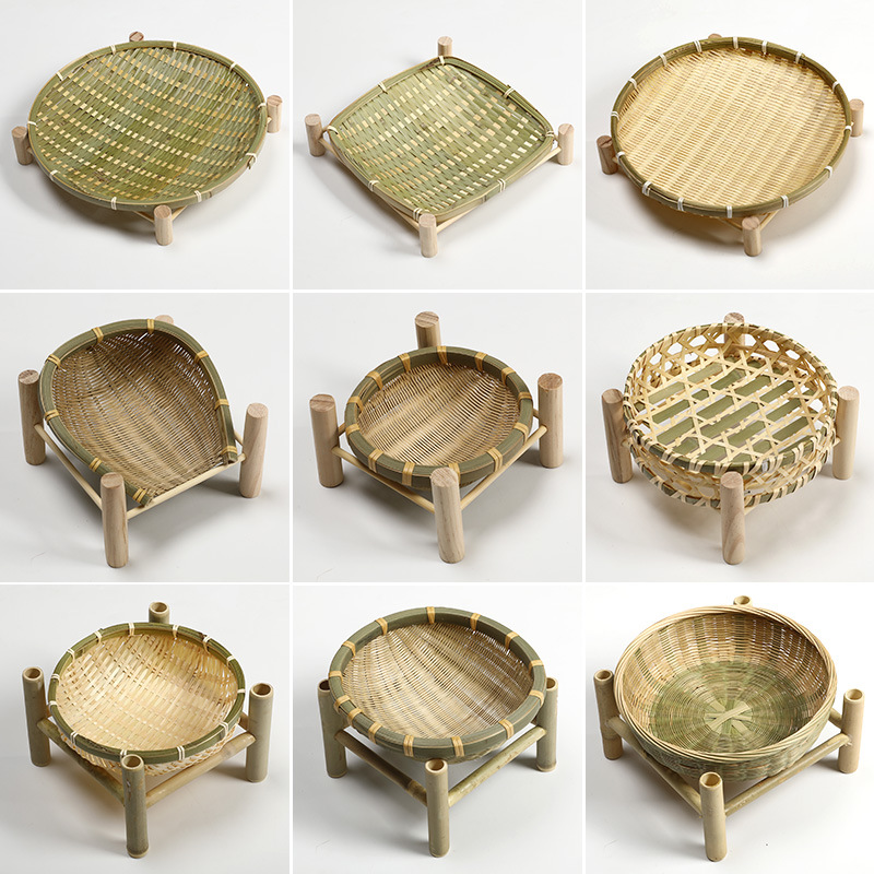 手作り竹製品小さな竹かごラウンドシェルフちりとりホテルレストランスナックフルーツスナックプレート蒸しパンバスケット
