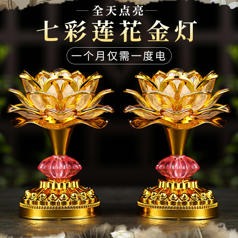 2024 新蓮花ランプ菩薩ランプ LED ランプカラフルな仏ランプ仏前ランプ家庭用仏ランプ常夜灯