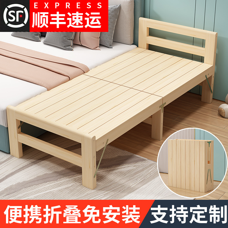 無垢材折りたたみスプライシングベッド、幅広ベッド、長尺ベッド、パイン材ベッドフレーム、子供用シングルベッド、ベッドサイドベッド