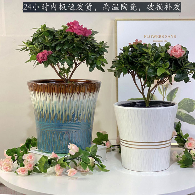 特大グリーン植物フロアグレーと白のセラミック植木鉢北欧モダンシンプルなバルコニー中庭植木鉢