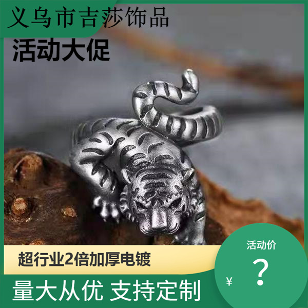 泰銀虎指輪復古活口指輪男十二生肖口威武覇気男戒卸