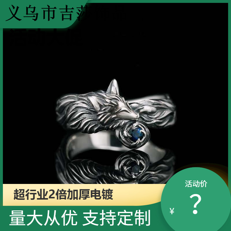 欧米のクロスボーダー新商品wish指輪レトロサファイア狐指輪動物指輪メーカー卸売り