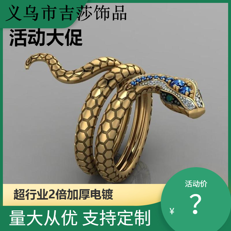 クロスボーダー速売通指環欧米創意蛇形微嵌宝藍ジルコン男女通用指輪メーカー卸売り
