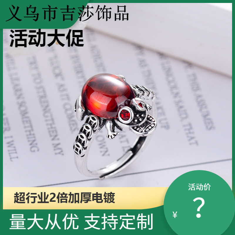 大東門泰銀ルビー狐指輪女ガーネット象指環ネット赤同金招財猫開口戒
