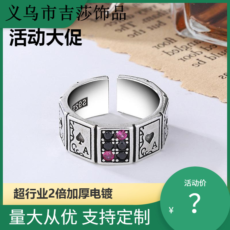 ジルコンを入れたスペードaトランプの指輪のレトロなヒップホップの誇張した個性的なトランプの口の指環の商品の卸売り