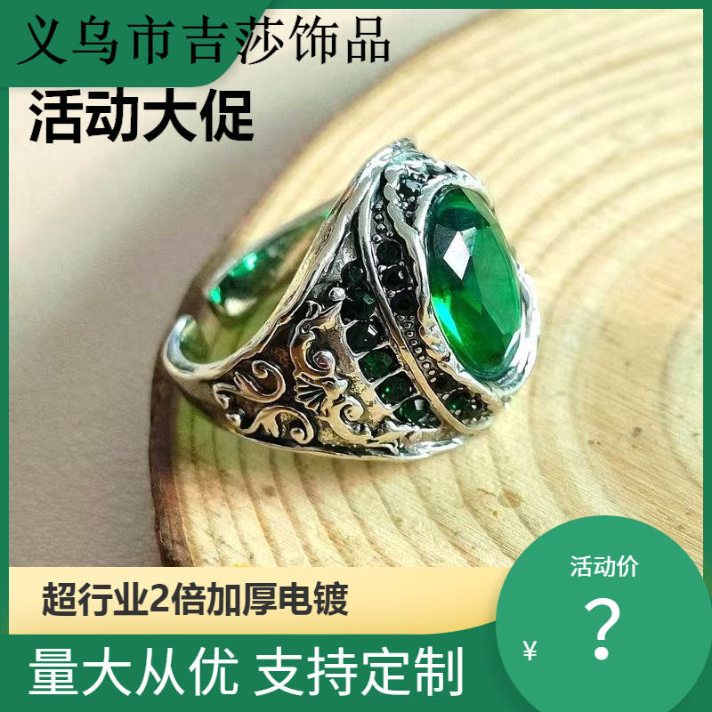 国境を越えた新型の商品源欧米の個性的なレトロな男性は対外貿易の緑色のジルコンのダイヤモンドの宝石の指輪の卸売りをやめます。