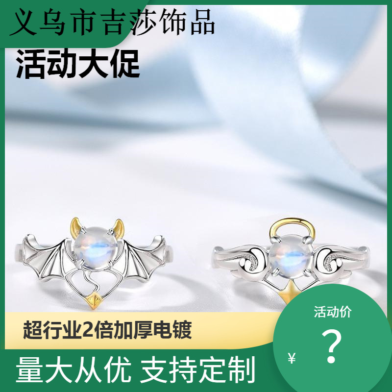 月光石カップルの親友天使の悪魔の開口部は指輪のペアの女性のファッションの男性の個性の大衆の設計を調節することができます。