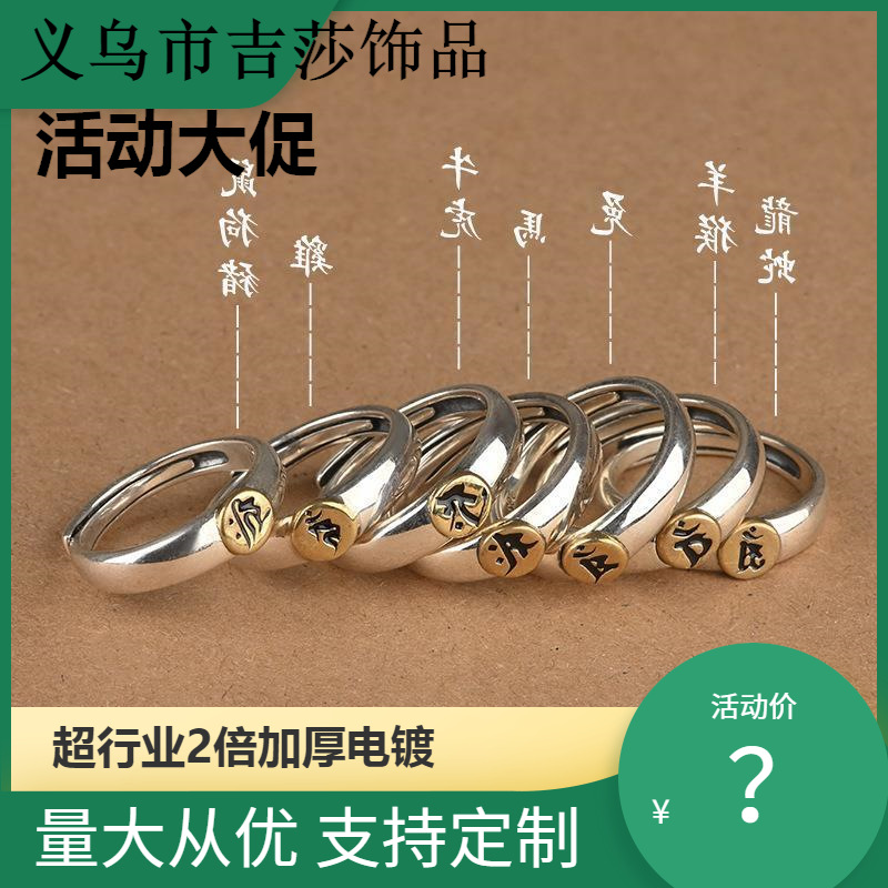 泰銀六字真言指輪十二生肖八大本命仏シンプル男女カップル指輪開口戒