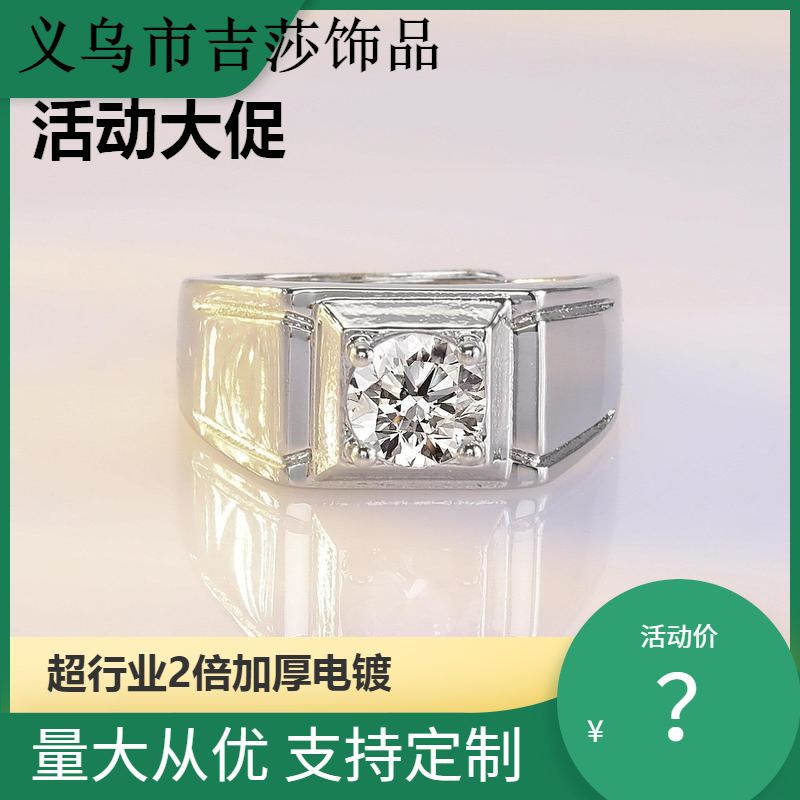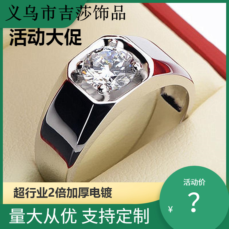 925泰銀メッキ現物莫桑石男性指輪四爪1カラット指輪ジルコン男性指輪結婚祝いプレゼント