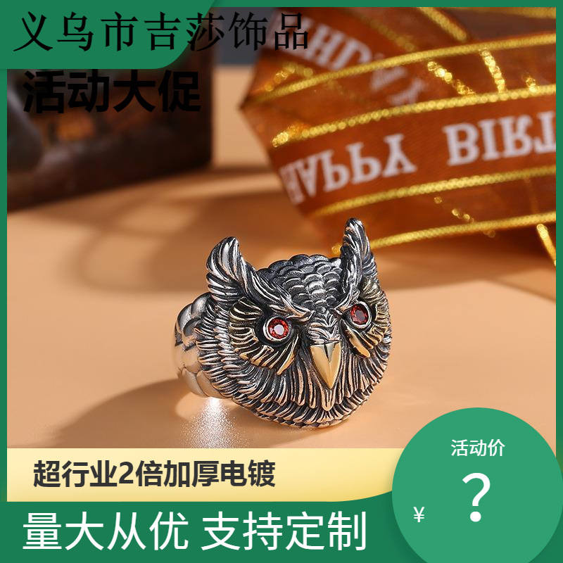 泰銀国潮風の指輪の男の復古は古いフクロウの指輪の個性をします。