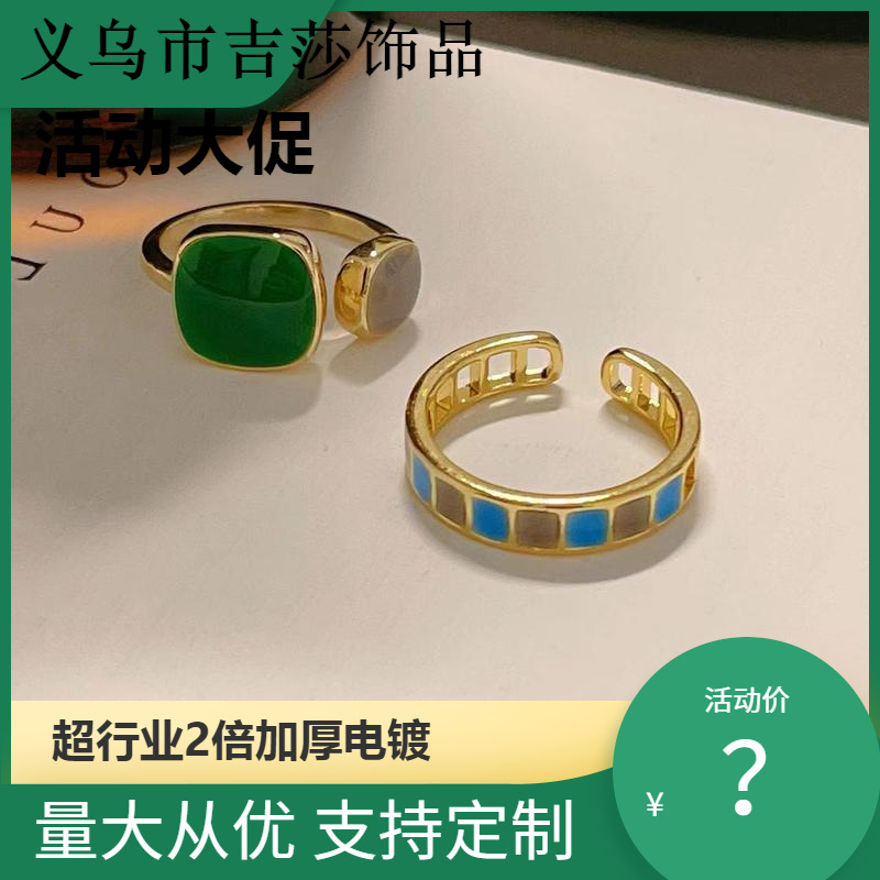 民族風は黄金をメッキして和田碧玉の指輪をまねます。