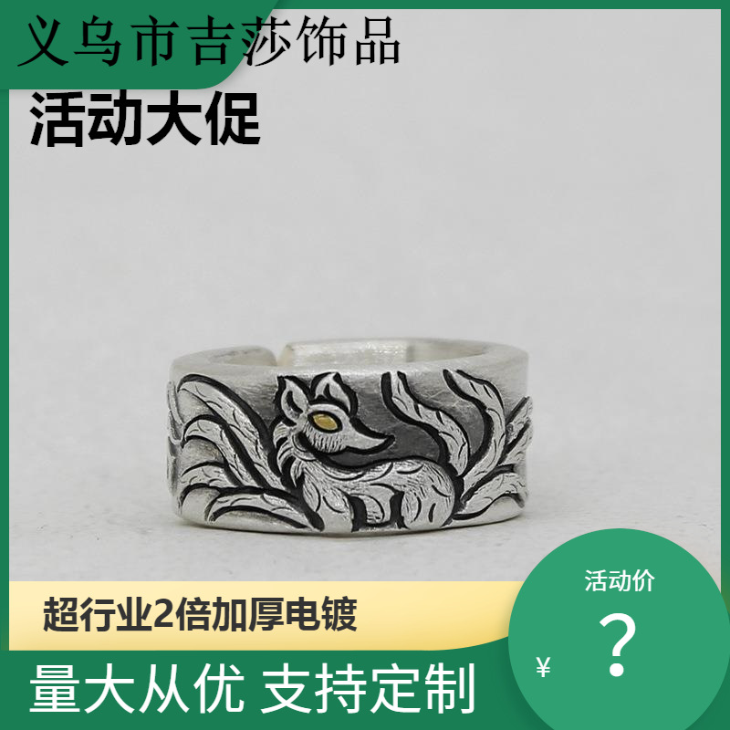 レトロ九尾狐泰銀指輪ins潮男性黄金食指戒カップルファッション個性開口アクセサリー