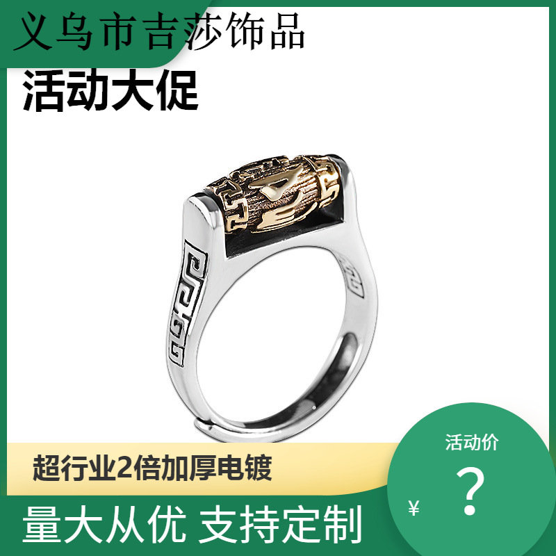 泰銀虎指輪復古活口指輪男十二生肖口威武覇気男戒卸