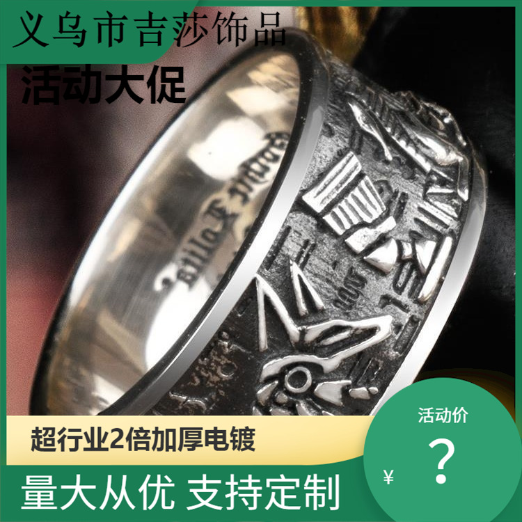 素銀レリーフエジプト神々ホルスアヌビスレトロ銀指輪潮男戒独身尾戒人差し指