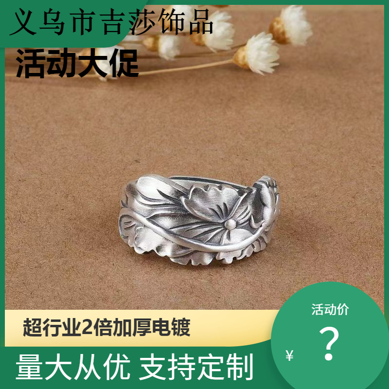 中国風蓮花ハスの花の開口指輪銀色のレトロな女性のファッションの美しい合金の指輪のアクセサリーの卸売り