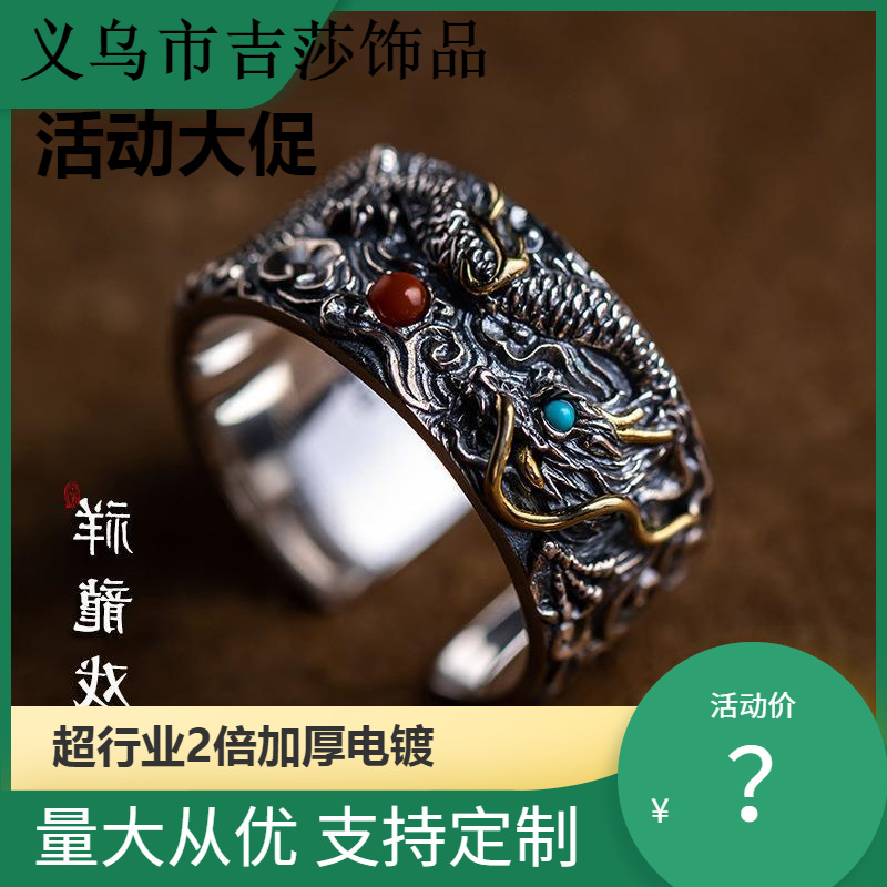 素銀祥ドラゴンボールリング男性モデルレトロ国潮覇気個性開口泰銀指輪
