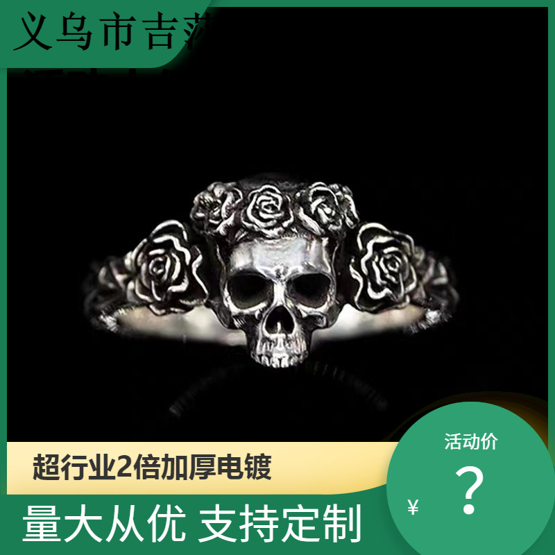 レトロ欧米の暗黒の個性のゴシックの黒いバラのスカルの泰銀の指輪の男女の開口部はカップルの指輪を調節することができます。