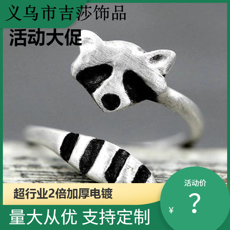 銘誠wish欧米創意新作アライグマ開口指輪女性可愛いキツネ尻尾動物指輪アクセサリー