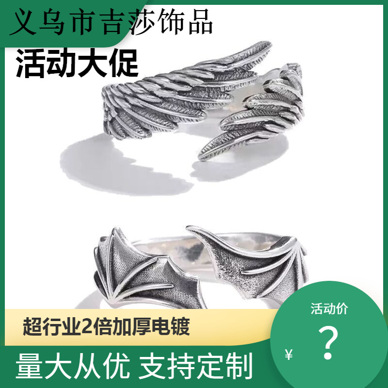 天使と悪魔の翼の指輪の小さい大衆の復古の開口の指輪の女性のカップルの指輪のメーカーは直接供給します。
