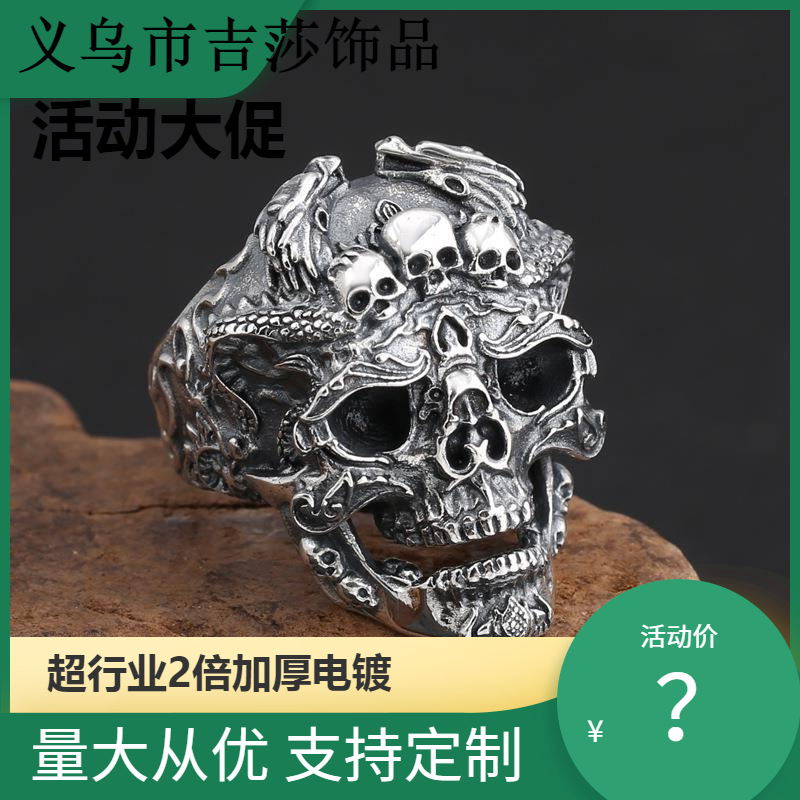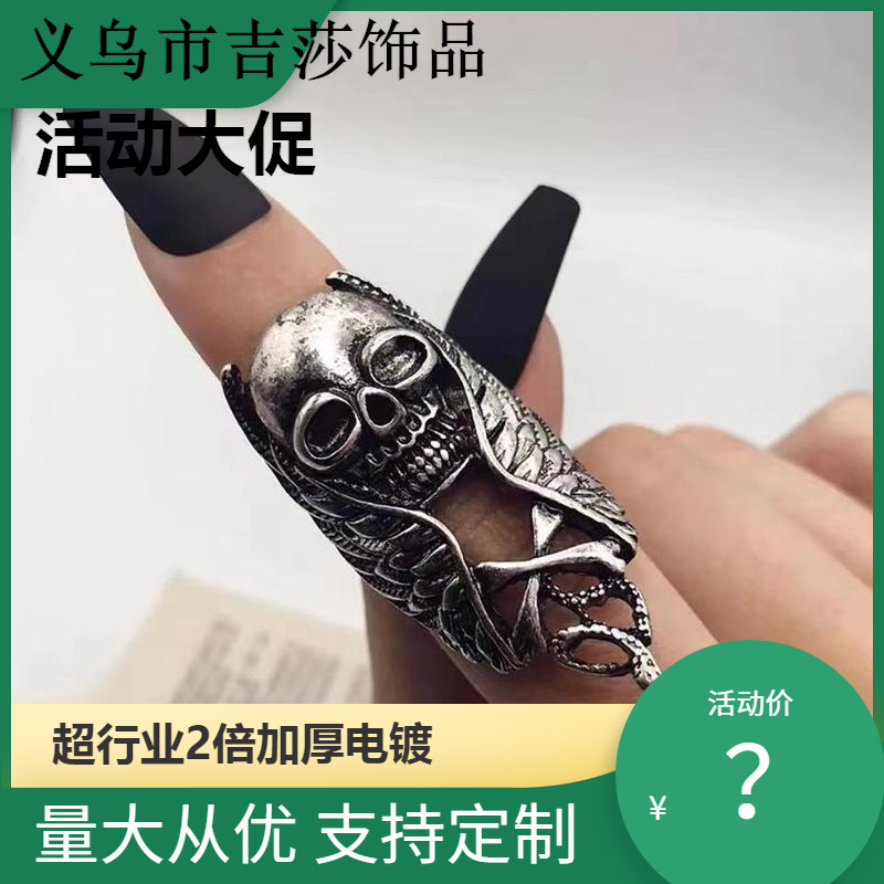 国境を越えた欧米合金復古パンク風の長い指輪ロック頭蓋指輪メーカーの人気スポット卸売り