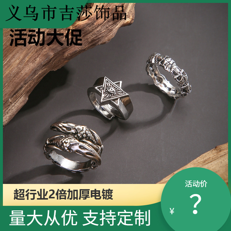 ヨーロッパとアメリカのレトロな六芒星リングセットメンズトレンディなヒップホップファッションパーソナライズされたハイエンドリングクロスボーダーメンズハンドアクセサリー